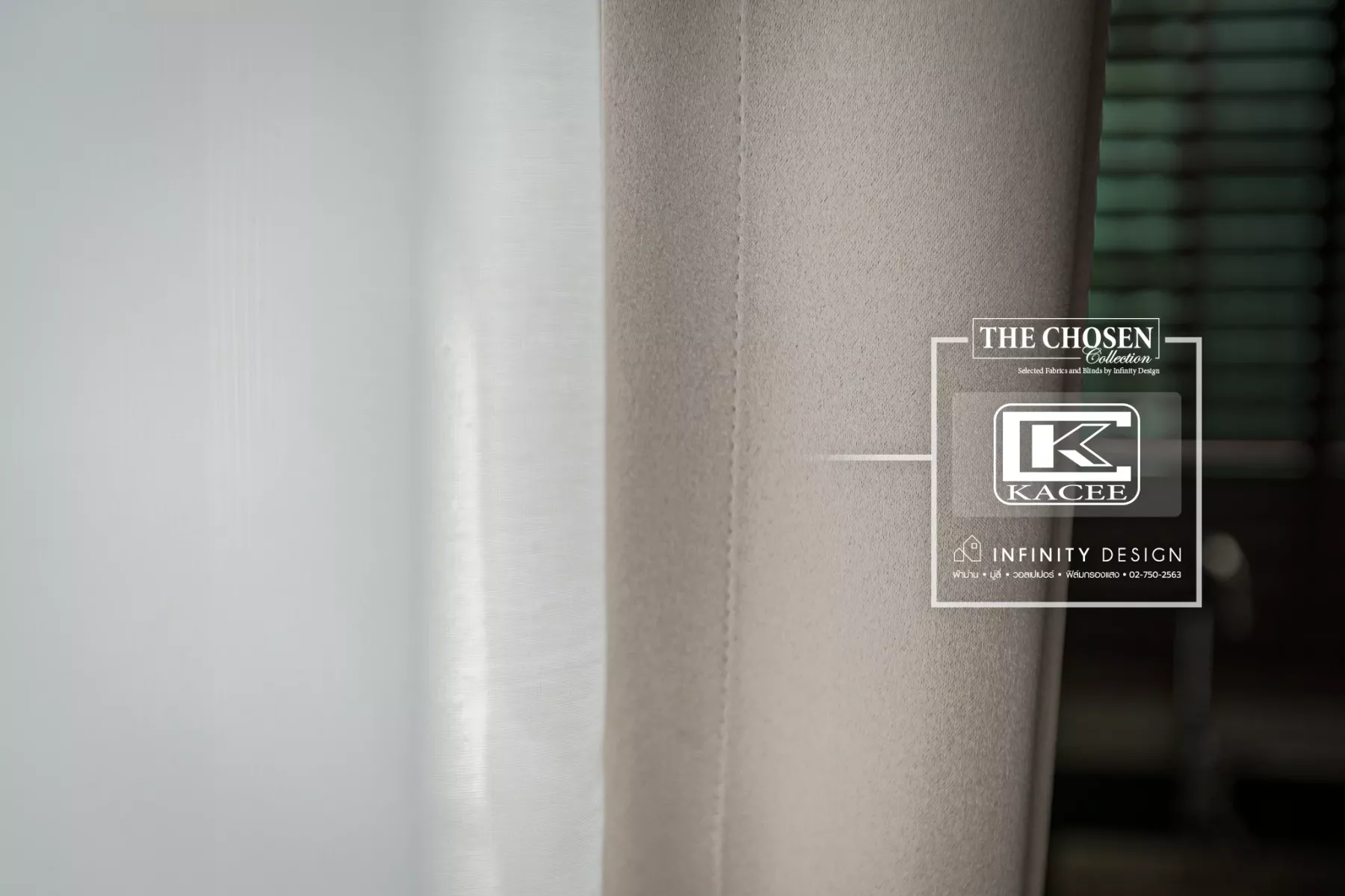 ซ้อนด้วยผ้าโปร่งสีขาว ช่วยกรองแสงแดดให้นุ่มลง แต่ยังคงความเป็นส่วนตัว และระบายอากาศได้ดี เหมาะกับพื้นที่ภายในบ้านที่ต้องการความโปร่งสบายตา เห็นวิวทิวทัศน์ภายนอกได้อย่างไม่อึดอัด ทำให้บรรยากาศของห้องสวยขึ้นอีกด้วย จากแบรนด์ VICHITR