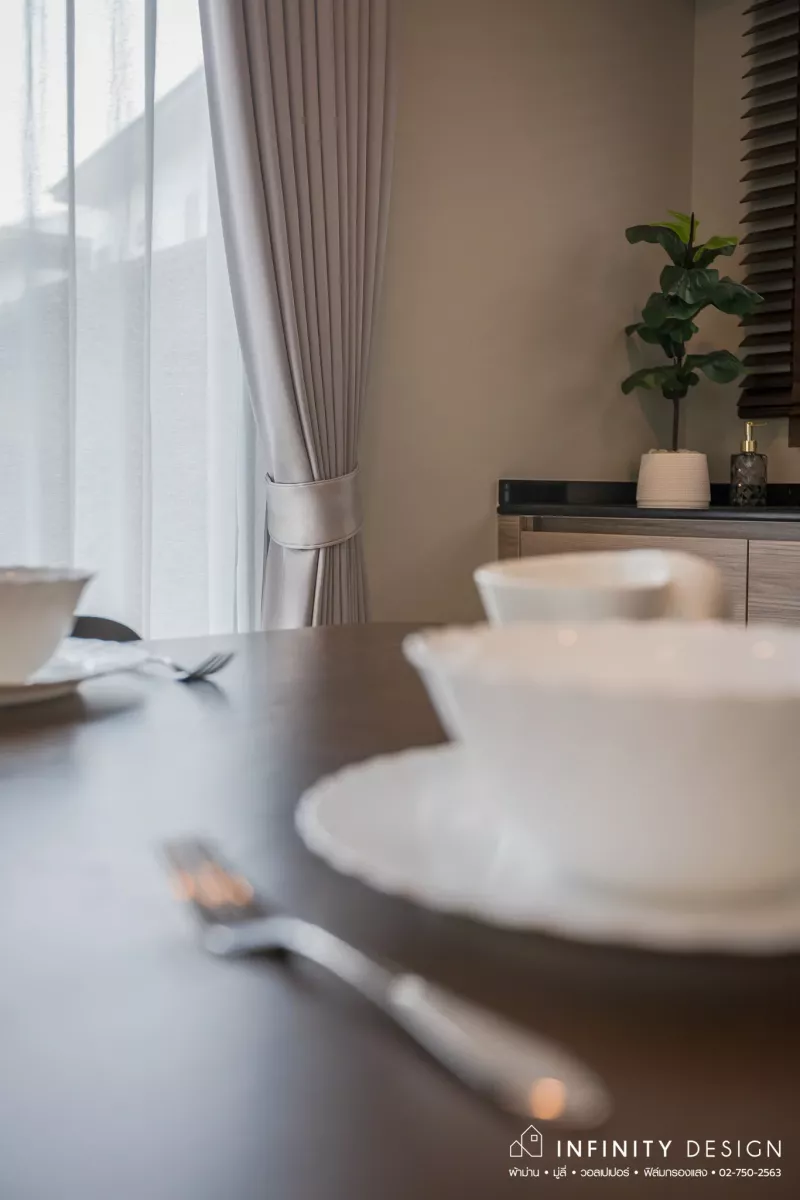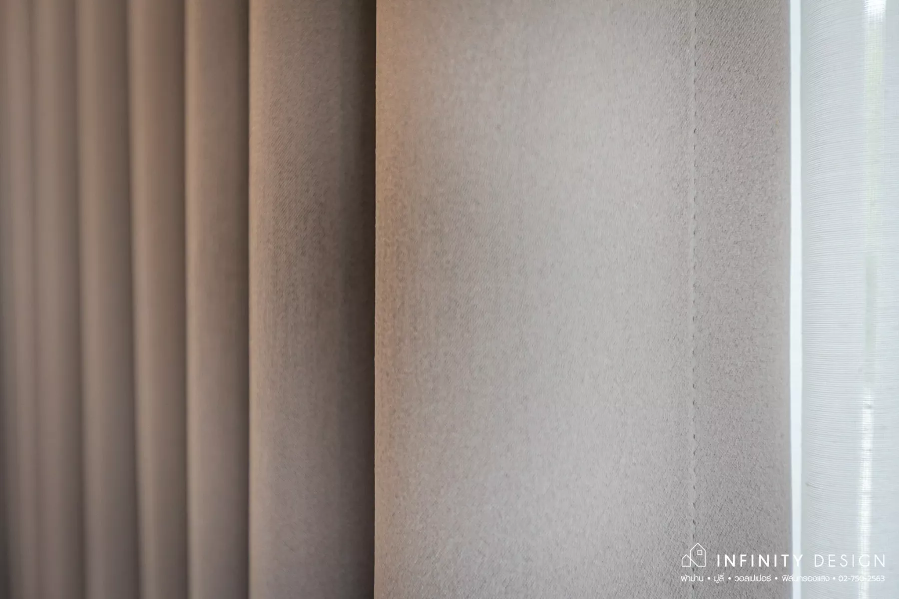 ผลงานการตกแต่งบ้าน บุราสิริ กรุงเทพกรีฑา ในสไตล์ Modern Contemporary Style เรียบๆ ง่ายๆ แต่ยังดูทันสมัย โดยทีม Infinity Design จะตกแต่งด้วย “ผ้าม่าน” โทนสีเทา เนื้อผ้ามีความเงาประกายมุกดูสวยงาม และผ้าม่านโทนสีน้ำตาลให้ความอบอุ่น เนื้อผ้ามี Texture เล็กน้อย