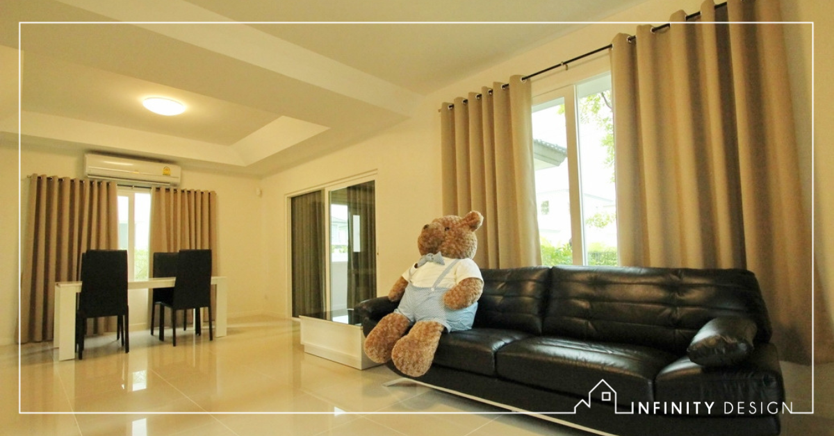 ผลงานการตกแต่งบ้าน ชัยพฤกษ์ บางนา กม. 15 ที่ INFINITY DESIGN ตกแต่ง Scandinavian Style มีความเรียบง่าย อบอุ่นด้วยผ้าม่าน 2 ชั้น ควบคุมแสงธรรมชาติและความเป็นส่วนตัว