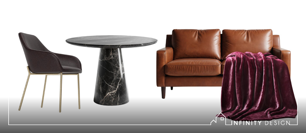 Hollywood Glam จะเลือกวัสดุที่เน้นความแวววาว จนสามารถเรียกได้ว่า All That Glitters เช่น โครงโลหะหรือเมทัลลิค หนังที่มีเรียบเงา ผ้ากำมะหยี่จะช่วยให้ดูหรูหรามากยิ่งขึ้น