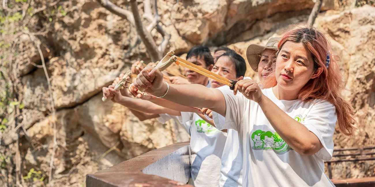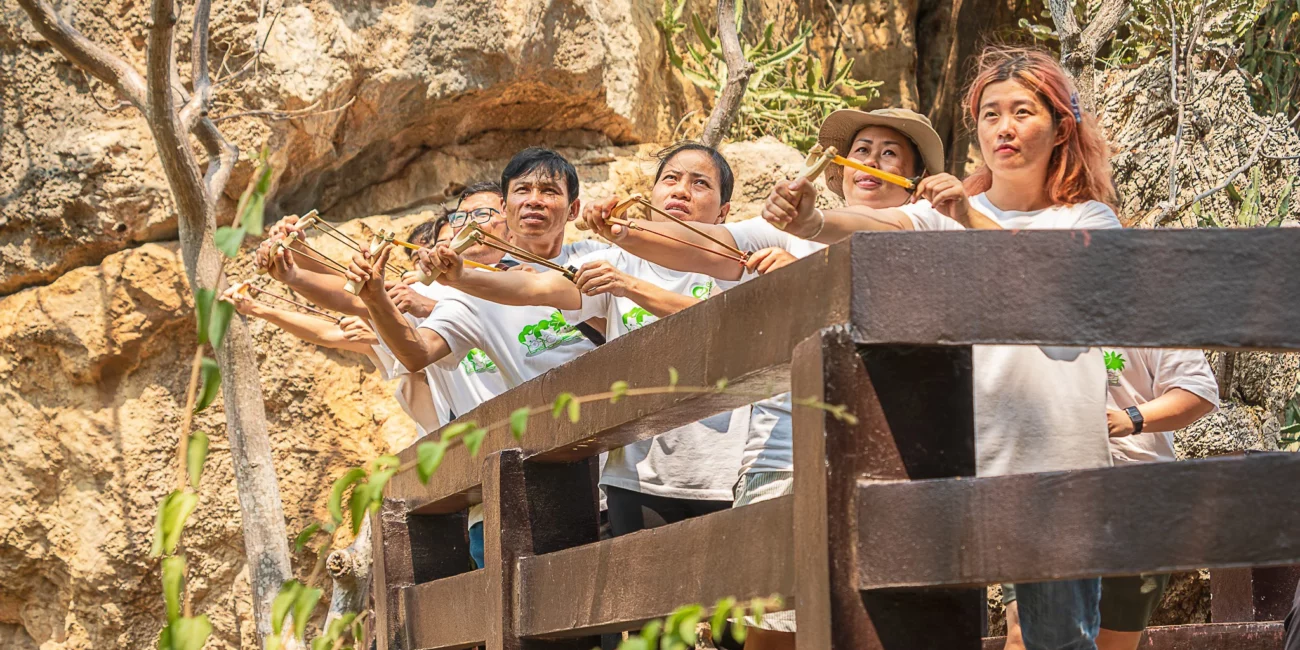จุดที่เราขึ้นไปยิงกระสุนเมล็ดพันธุ์จะต้องผ่าผ่านศาลแม่นางพันธุรัต แถมเป็นจุดชมวิวที่มองเห็นเมรุนางพันธุรัตด้วย แต่บอกเลยว่าถ้าใครยิงไม่ดี เพื่อนๆ ที่รออยู่ด้านล่างเสี่ยงหัวแตกได้เลยนะ ดังนั้นเตรียมหนังสติ๊กให้พร้อมยิงให้ไกลไปให้ถึง!!