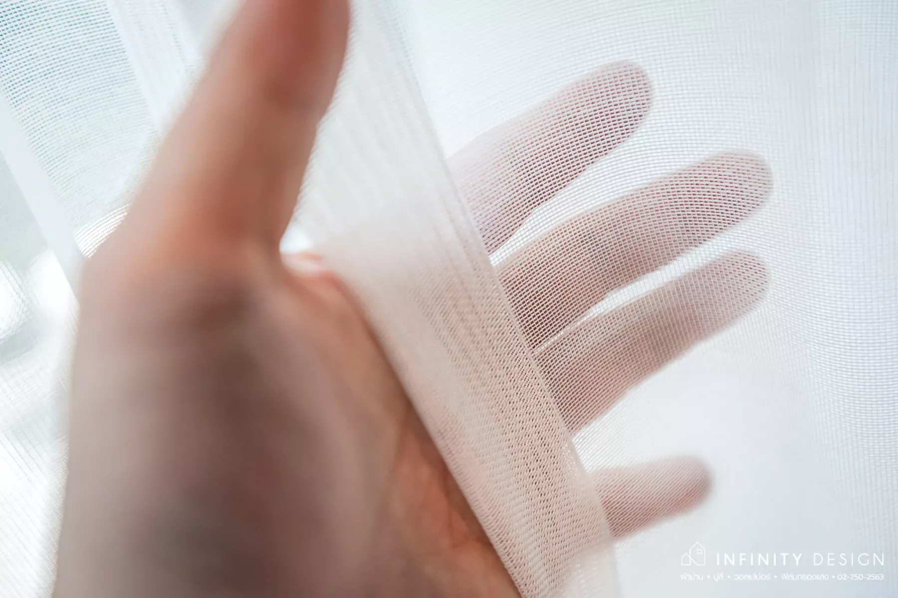 สายรวบผ้าม่าน จะใช้ผ้าแบบเดียวกันกับผ้าม่านลอนกันแสง แต่ INFINITY DESIGN เพิ่มความแตกต่างและความสวยงามยิ่งขึ้น ด้วยการเย็บเดินขอบรอบด้าน ไม่ให้ขอบย่นเวลารวบเก็บ อีกทั้งสายรวบม่านลักษณะนี้จะช่วยทำให้ผ้าม่านเป็นรอยน้อยลงด้วย หากเป็นสายรวบม่านแบบเชือกจะทำให้ผ้าเป็นรอยยับได้ง่าย