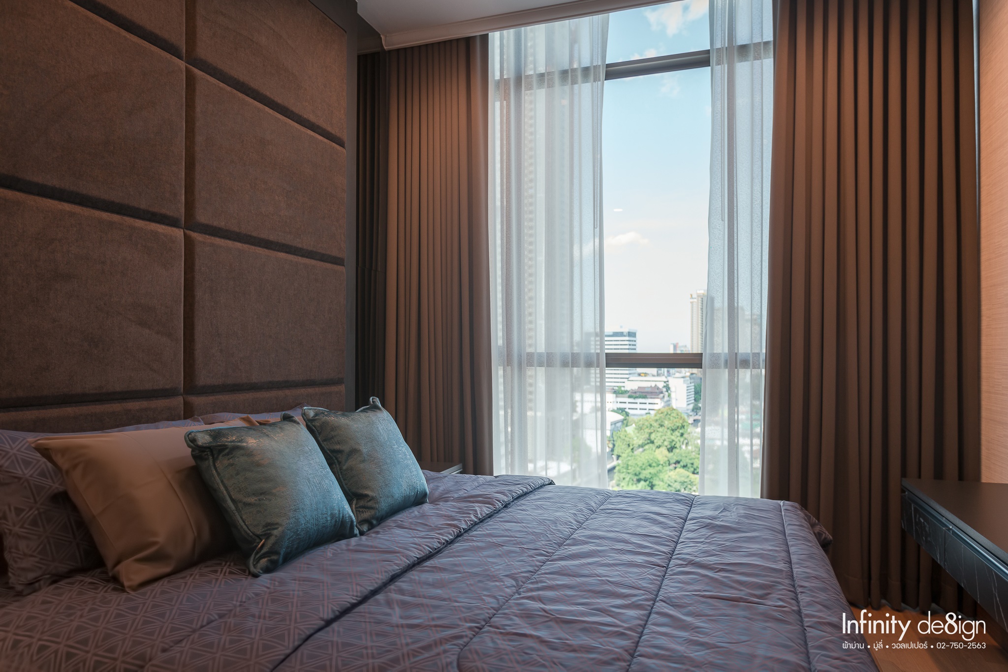 ห้องนอนใหญ่ตกแต่งด้วยผ้าม่านลอน 2 ชั้น @ Supalai Oriental สุขุมวิท 39